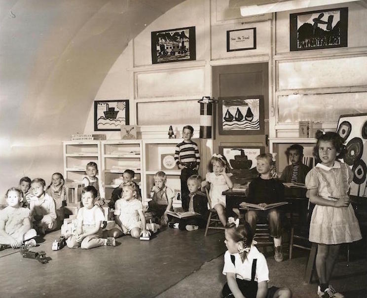 Kindergarten. On base but in a Quonset hut near the softball field and across from the old church.