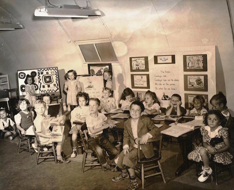Kindergarten. On base but in a Quonset hut near the softball field and across from the old church.