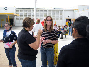 School teacher, Connie Abshire, w/students and snacks