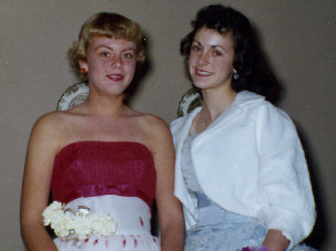 Freshmen Marilyn Rickhoff & Debbie Whitnack, double dating a couple Juniors at the Jr. Prom