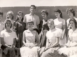 1961 Rally Committee Sharon Meila, Marilyn Rickoff, Sharon Currier, Gordon Braham, Jaynee Eilts, Debbie Whitnack, Ann Nelligan, seated Karen Skarr, Stephanie Van Hagen, Jo Bratton, Bonnie Short