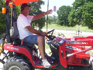2008. Rich Davis of his MF tractor at their 'dMR' ranch in Hawley, TX.