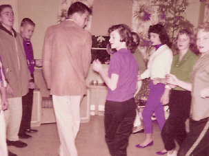 Jr Hi dance. Left, Ray Tomlinson, Dennis Sorge. Middle, Mike Johnson and Debbie Whitnack. Right, Coane Barnett, Darlene Case & Nancy Florence