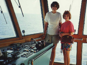 1992 cruise, Bonnie Breaw-Hale, Pat Burke-Charlon on the Bridge, one week after Hurricane Andrew